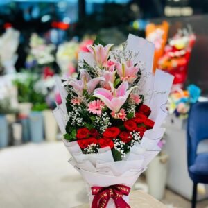 Ignite passion with the dramatic Birthday-Anniversary Hamper T-74669, a bold statement of romance and celebration masterfully curated by Team14 Gift Shop to make hearts race and moments unforgettable! This striking ensemble features a sleek black bubble balloon boldly inscribed with “Happy Birthday” in elegant silver script, floating like a midnight promise above a lush bouquet of vibrant red roses intertwined with aromatic eucalyptus leaves, all wrapped in sophisticated black paper and secured with a classic red ribbon for an air of mysterious allure. Complementing the floral intensity is a decadent red velvet cake, its glossy crimson surface etched with a personalized message, offering layers of rich, velvety indulgence that’s as intense as the love it represents. Perfect for birthdays, anniversaries, or any occasion that demands a touch of fiery elegance, this hamper from Team14 Gift Shop fuses balloon drama, petal passion, and cakey decadence into a gift that commands attention and steals breaths!